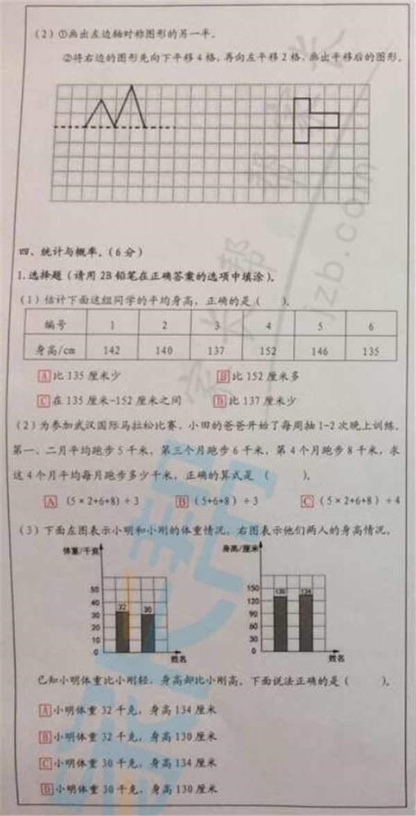 2016-2017武汉武昌区四年级下学期数学期末试卷(4)