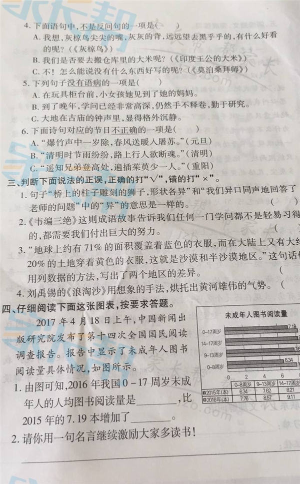 2016-2017武汉江汉区四年级下学期语文期末试卷(2)