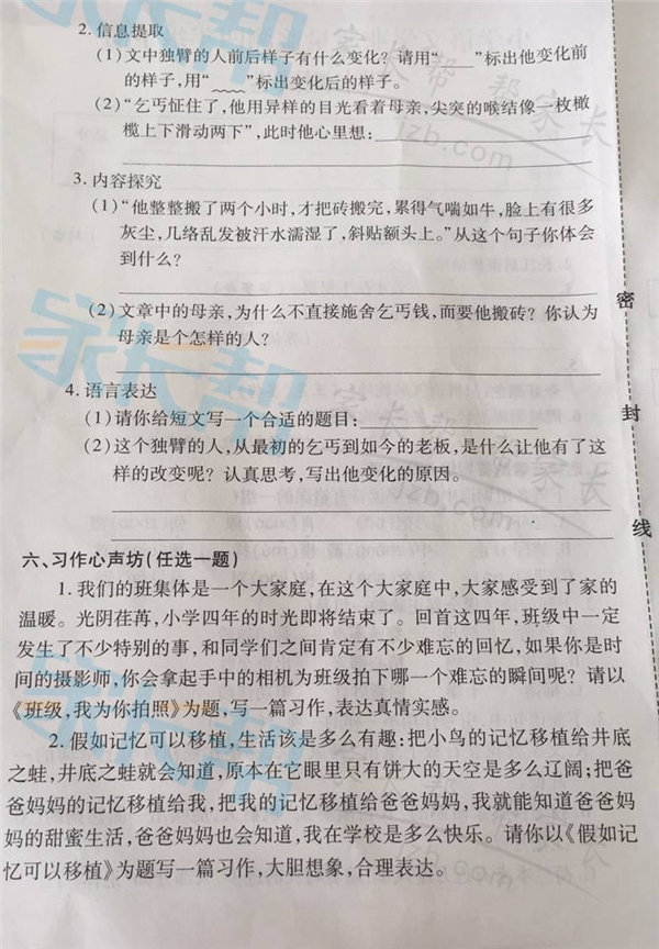 2016-2017武汉江汉区四年级下学期语文期末试卷(4)