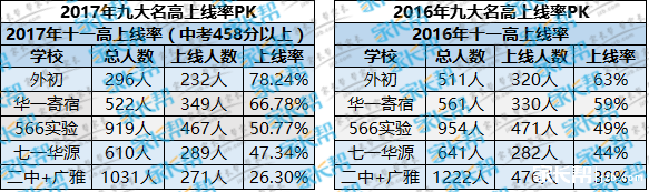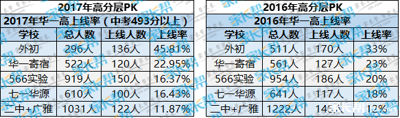 注意:遗憾,由于数据统计的是广雅+二初本部的合在一起的成绩,所以可怜的广雅落在了后面