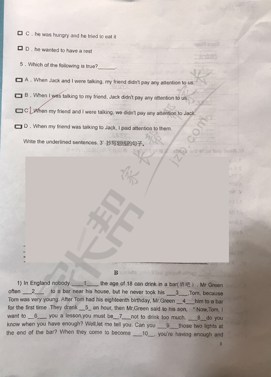 2017-2018武昌实验寄宿小学六年级上英语期中试卷(8)