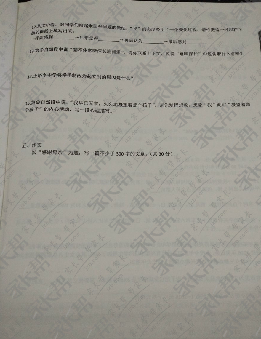 2017年武汉华一寄宿初一入学测试语文试卷(3)