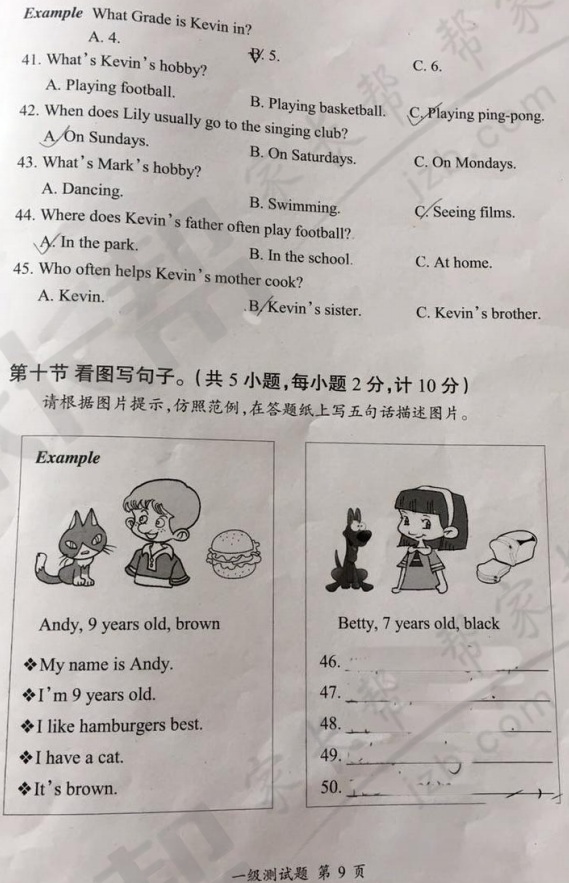 2017年武汉秋季习思英语一级试卷(9)