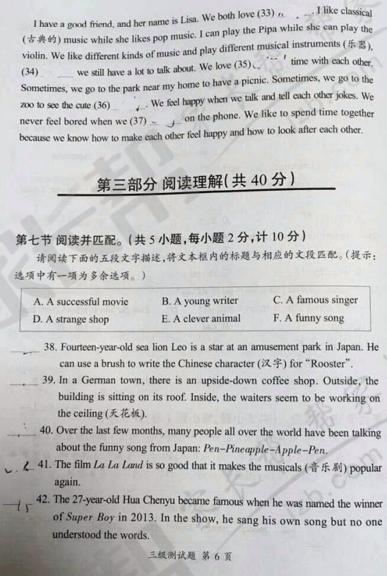 2017年武汉秋季习思英语三级试卷(6)