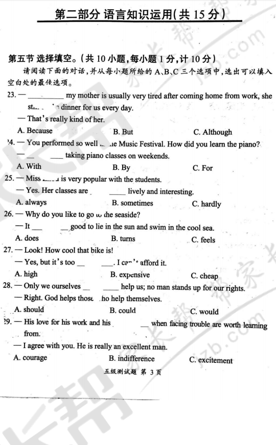 2017年武汉秋季习思英语五级试卷(3)