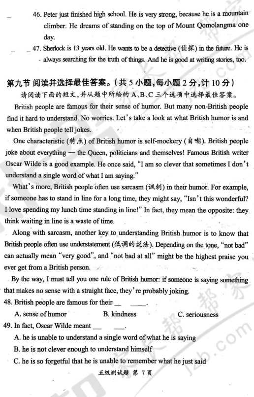 2017年武汉秋季习思英语五级试卷(7)