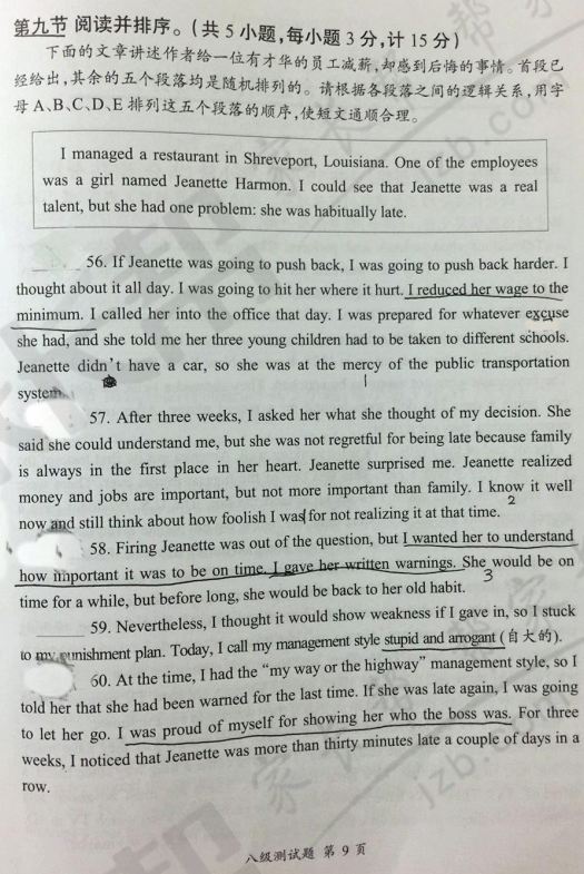 2017年武汉秋季习思英语八级试卷(9)
