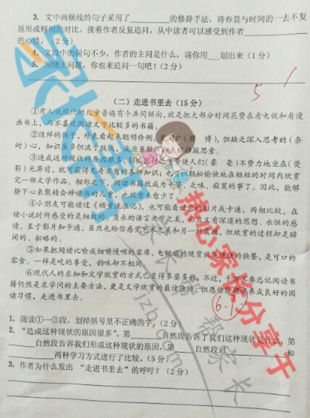 2018年武汉东湖高新区六年级语文期末试卷(4)