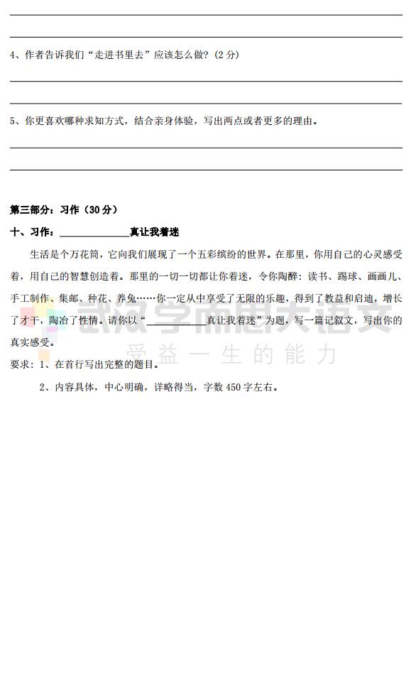2018年武汉高新区六年级语文元调试卷(5)