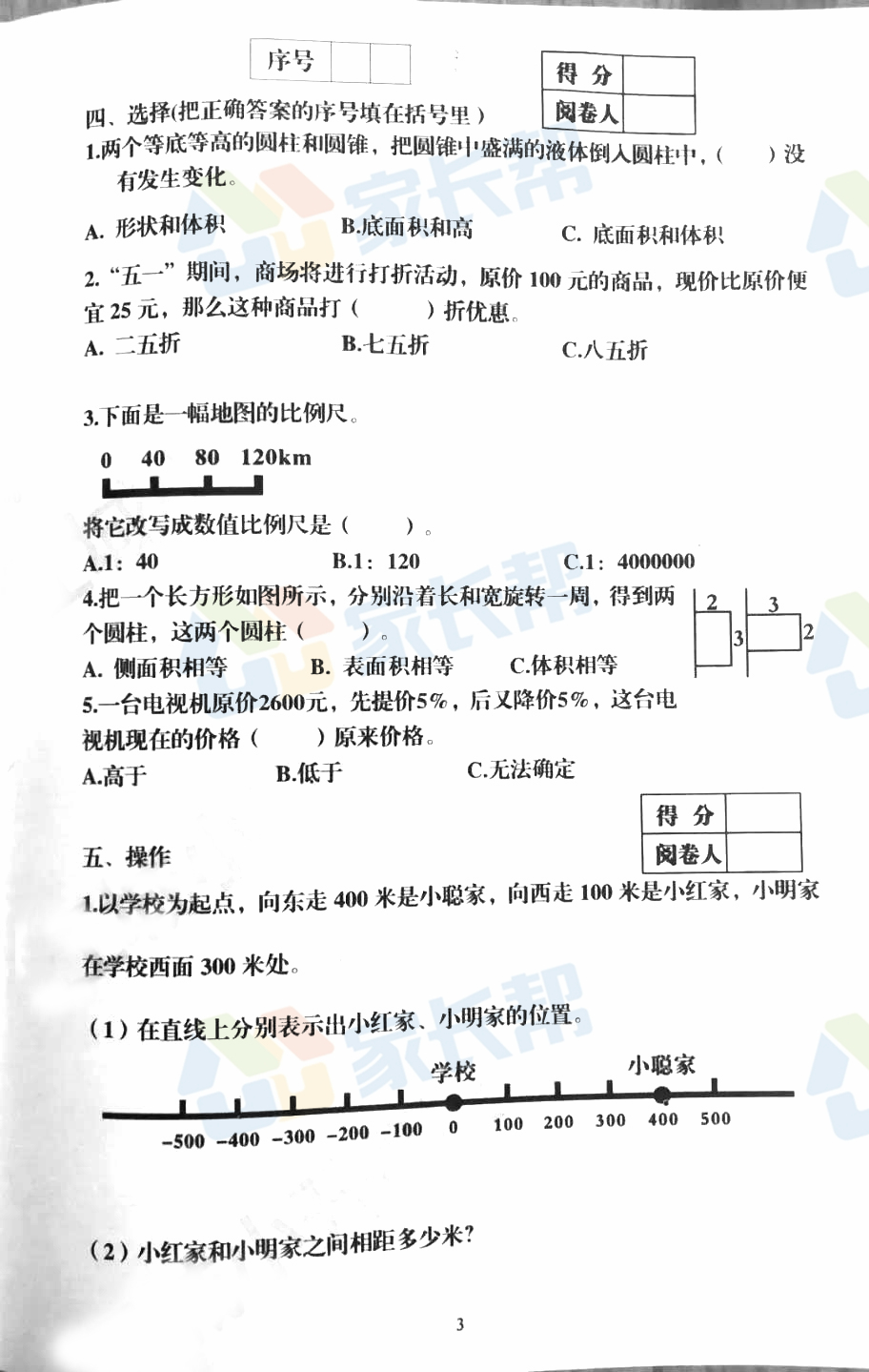 2018年武汉硚口区六年级期中数学试卷(3)
