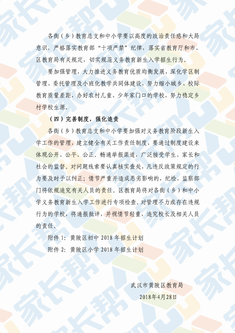 2018年武汉黄陂区义务教育新生入学实施方案(10)