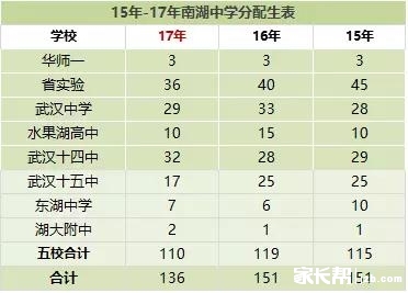 南湖上榜出乎很多家长意料之外,因为印象当中也不应该在这个位置。南湖同样没有自己的对应高中,由于政策原因,华师一每年只有3个象征性的指标。但是无论从规模上看,还是从未来南湖片区发展前景考虑,南湖中学发展前景还是相当不错的。17年南湖中学总计拥有136个省级示范高中的分配生指标,其中武昌区五大校合计110人,无论是从总人数还是五大校人数,都仅次于武珞路实验中学。