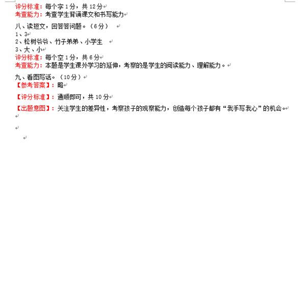 2019年武汉市小学语文一年级期末模拟卷一(图片版)(4)