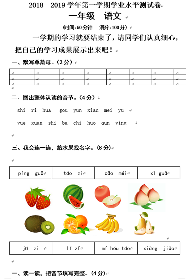 2019年武汉市小学语文一年级期末模拟卷三(下载版) 网络资源 2019-01-13 12:53:04 2019年武汉市小学语文一年级期末模拟卷三(下载版) 完整版链接:2019年武汉市小学语文一年级期末模拟卷三(下载版)