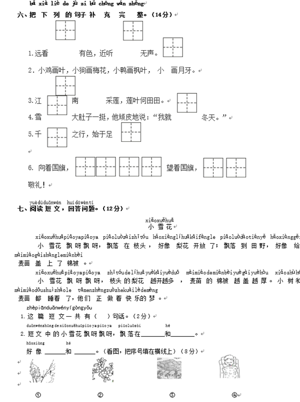 2019年武汉市小学语文一年级期末模拟卷四(图片版)(2)