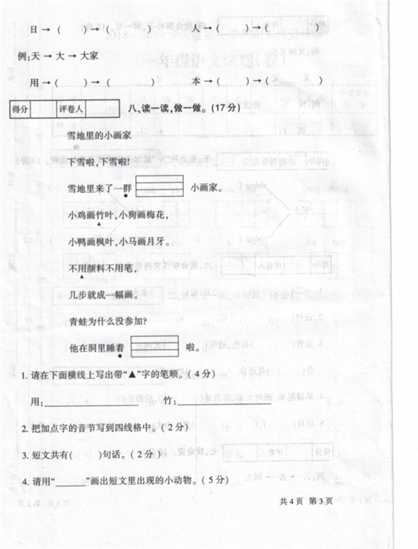2019年武汉市小学语文一年级期末模拟卷五(图片版)(3)