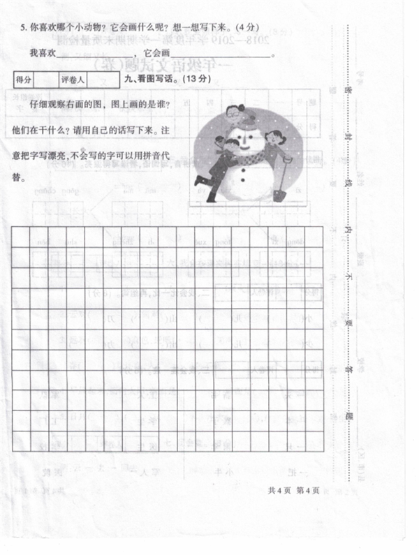 2019年武汉市小学语文一年级期末模拟卷五(图片版)(4)