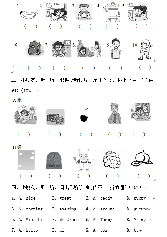 2019年武汉市一年级英语期末模拟卷四(图片版)(2)