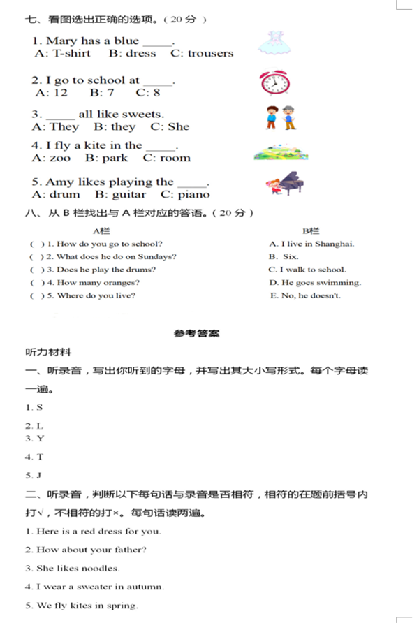 2019年武汉市小学二年级英语期末模拟卷四(图片版)(2)
