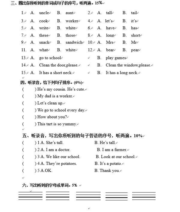 2019年武汉市小学二年级英语期末模拟卷七(图片版)(2)