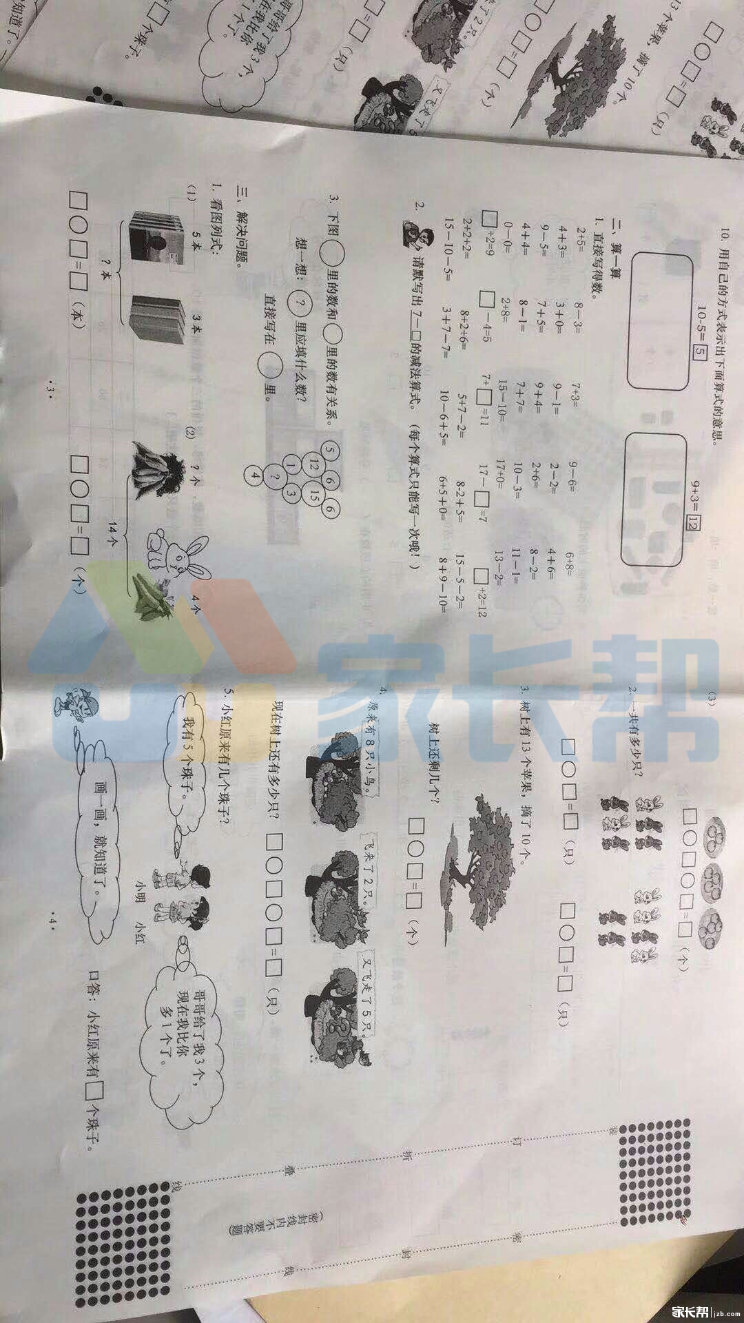 2019年武汉市汉阳区小学一年级数学期末试卷(图片版)(2)