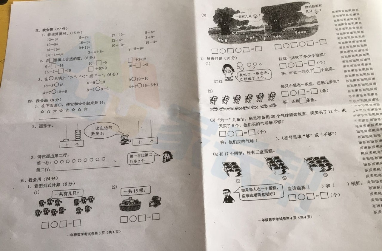 2019年武汉市蔡甸区小学一年级数学期末试卷(图片版)(2)