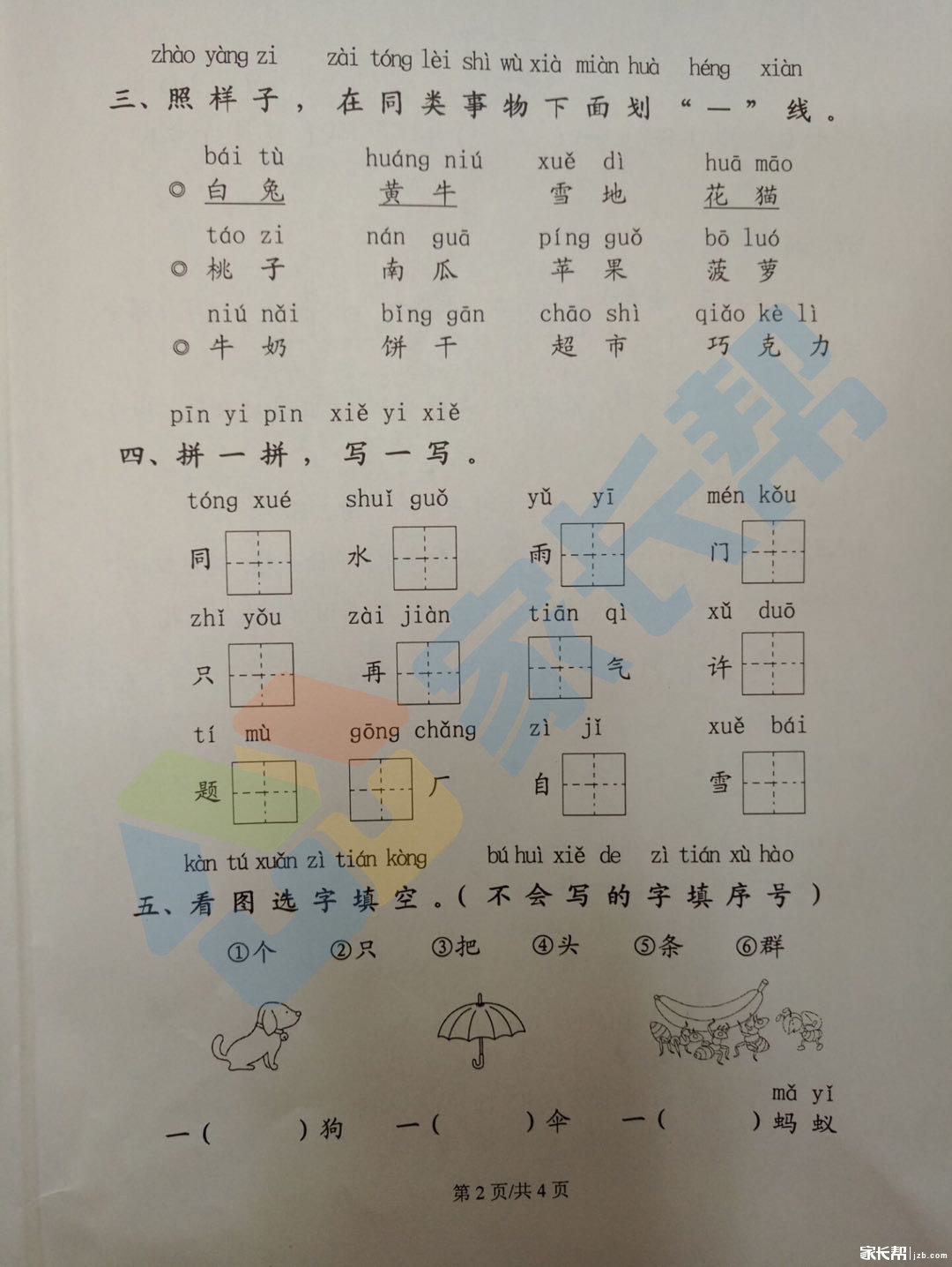 2019年武汉市武昌区小学一年级语文期末试卷(图片版)(2)