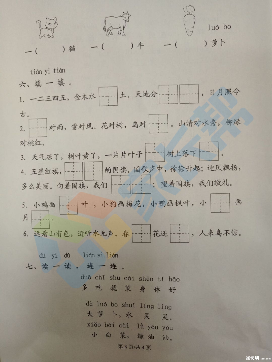 2019年武汉市武昌区小学一年级语文期末试卷(图片版)(3)