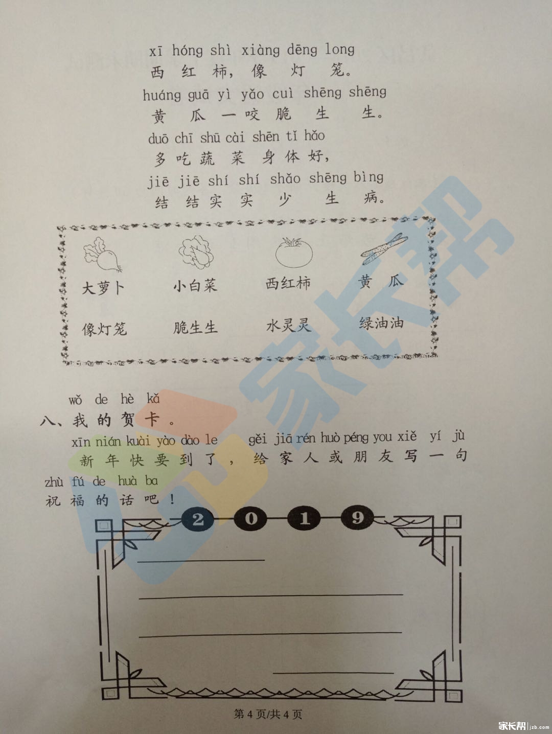2019年武汉市武昌区小学一年级语文期末试卷(图片版)(4)