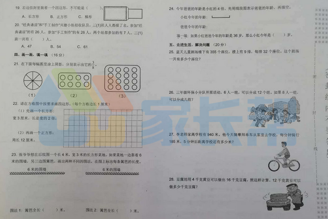 2019年武汉市青山区小学三年级数学期末试卷(图片版)(2)