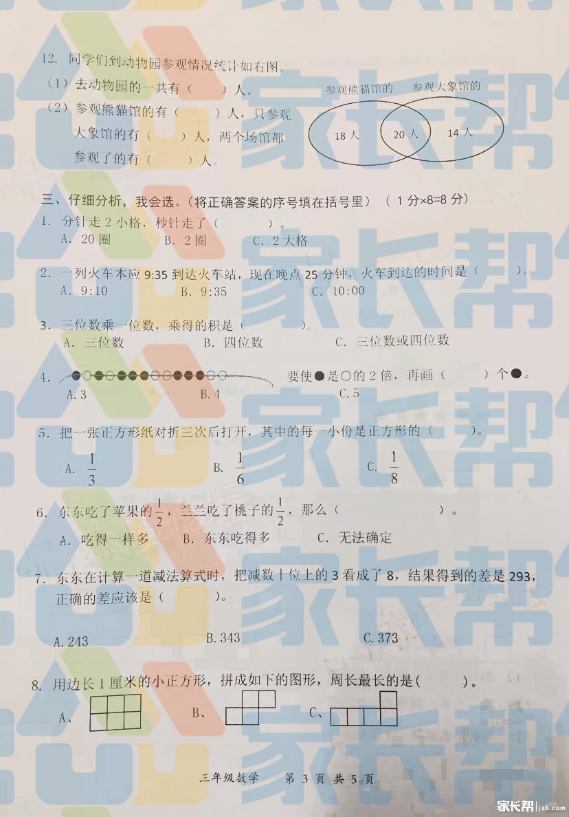 2019年武汉市东湖高新区小学三年级数学期末试卷(图片版)(2)