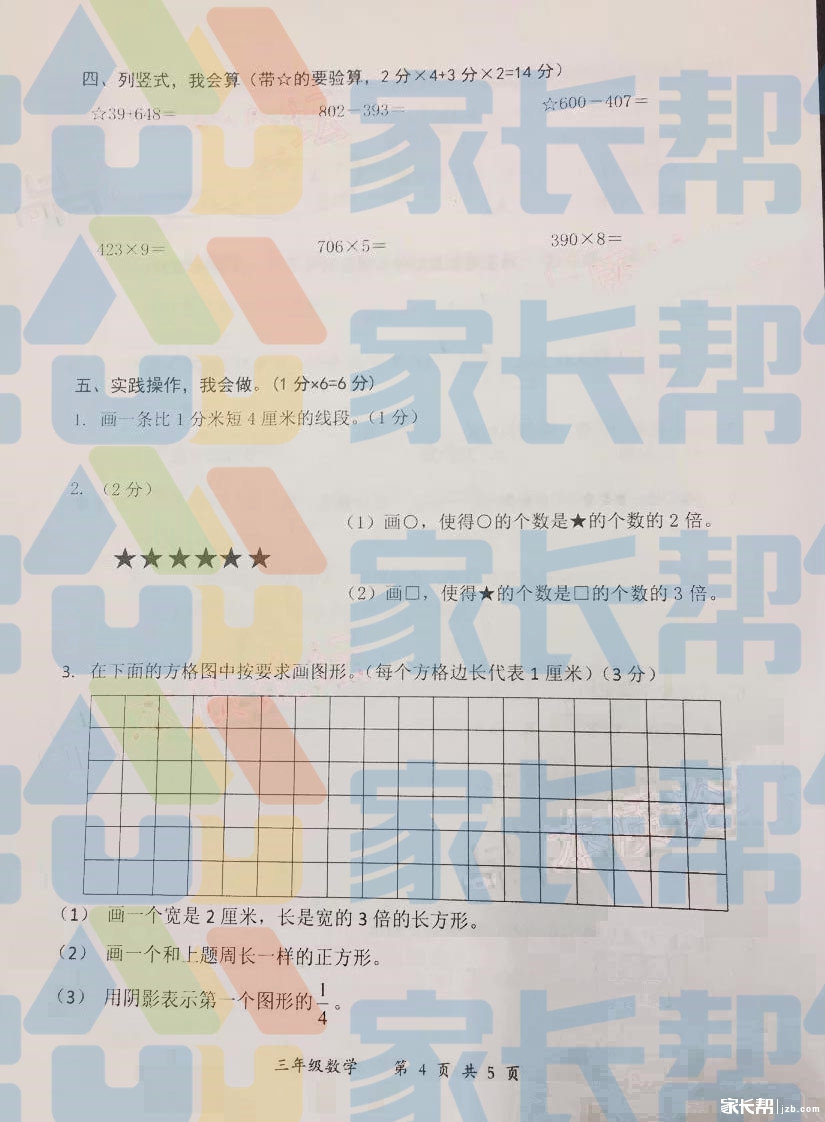 2019年武汉市东湖高新区小学三年级数学期末试卷(图片版)(3)