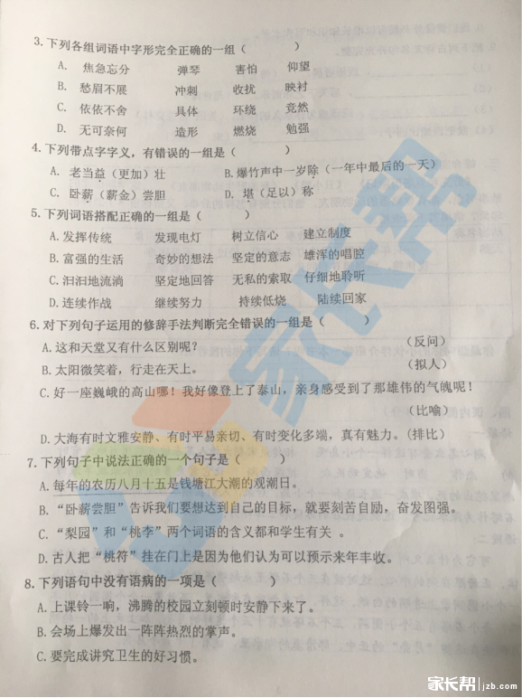 2019年武汉市硚口区小学四年级语文期末试卷(图片版)(2)