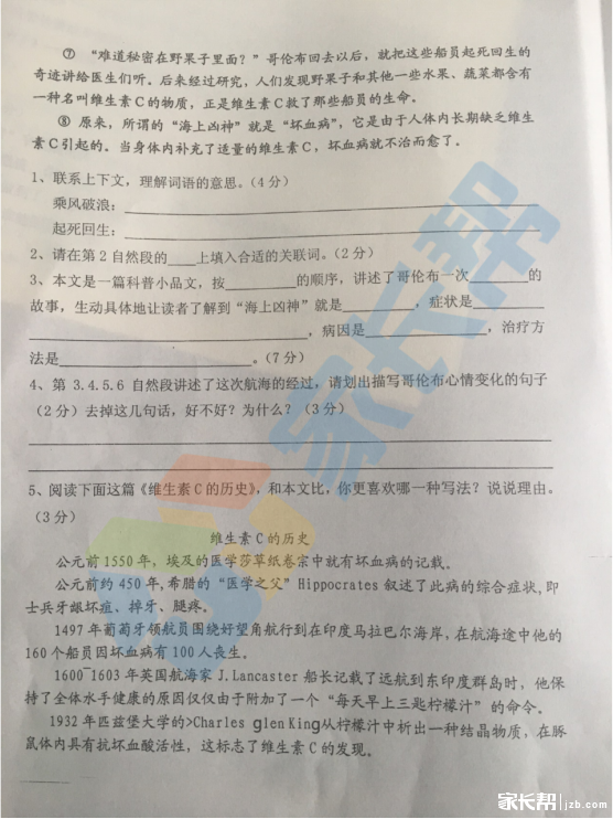 2019年武汉市硚口区小学四年级语文期末试卷(图片版)(5)