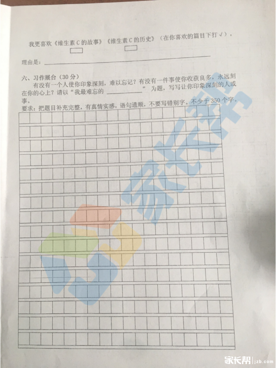 2019年武汉市硚口区小学四年级语文期末试卷(图片版)(6)