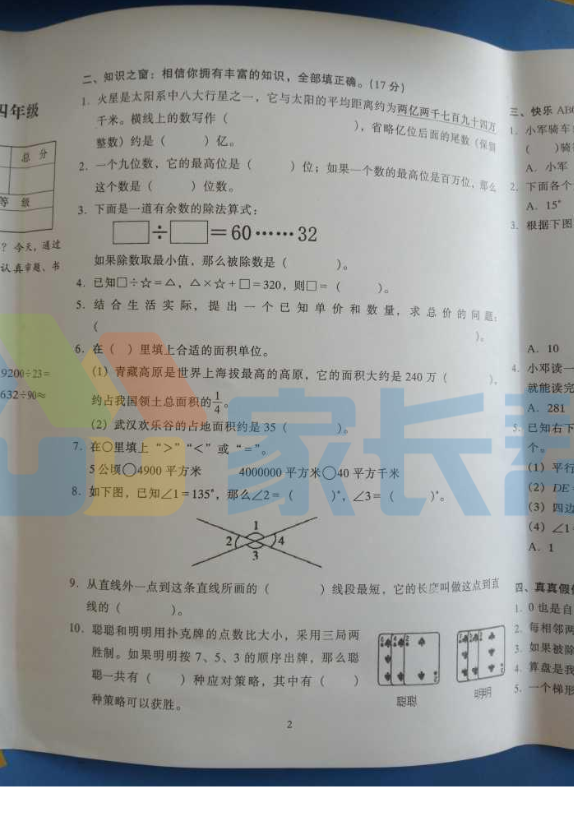 2019年武汉市江岸区小学四年级期末考试卷(图片版)(5)