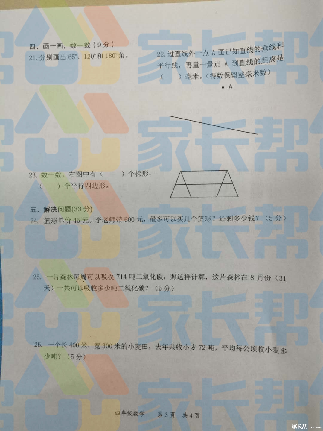 2019年武汉市东湖高新区小学四年级期末考试卷(图片版)(3)