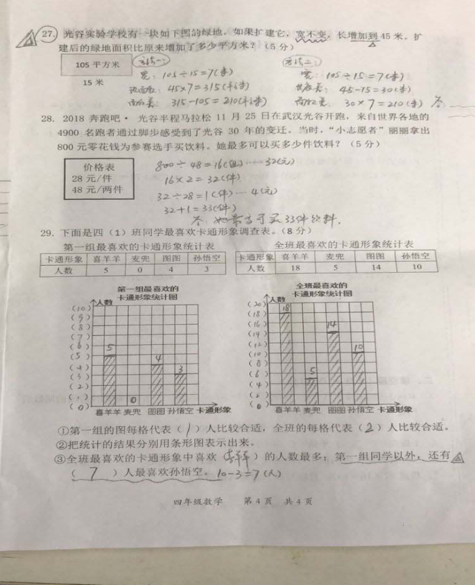 2019年武汉市东湖高新区小学四年级期末考试卷(图片版)(8)