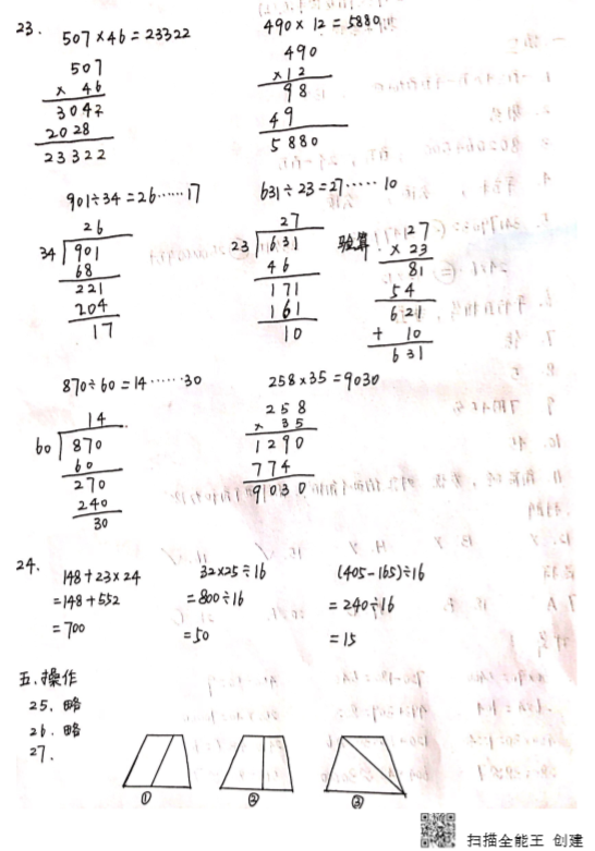 2019年武汉市汉阳区小学四年级期末考试卷(图片版)(4)