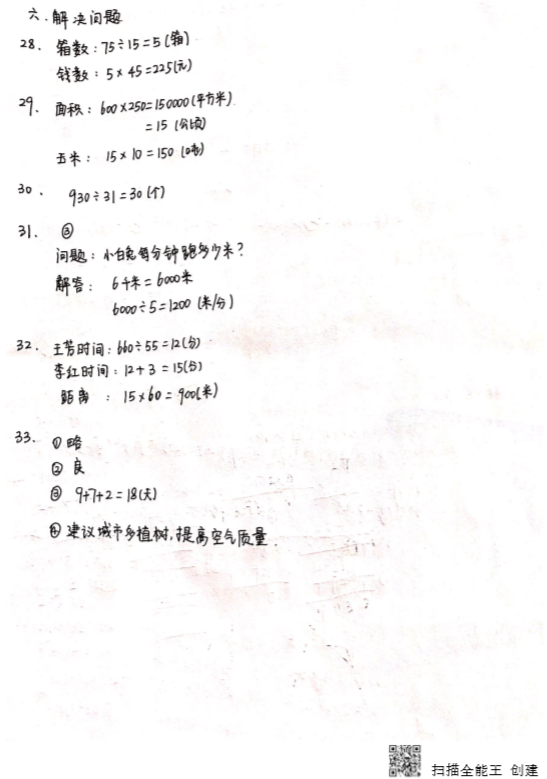 2019年武汉市汉阳区小学四年级期末考试卷(图片版)(5)