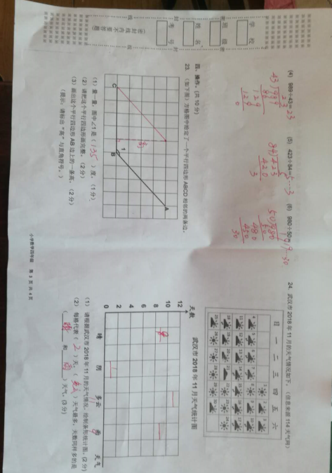 2019年武汉市青山区小学四年级期末考试卷(图片版)(3)