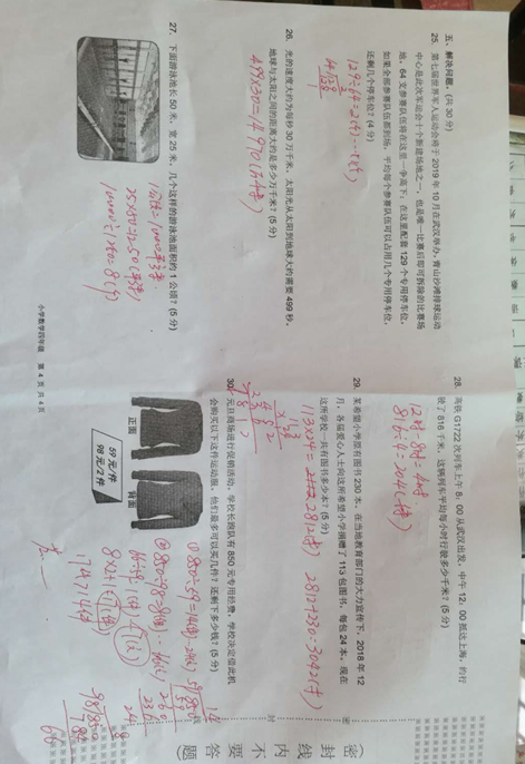 2019年武汉市青山区小学四年级期末考试卷(图片版)(4)