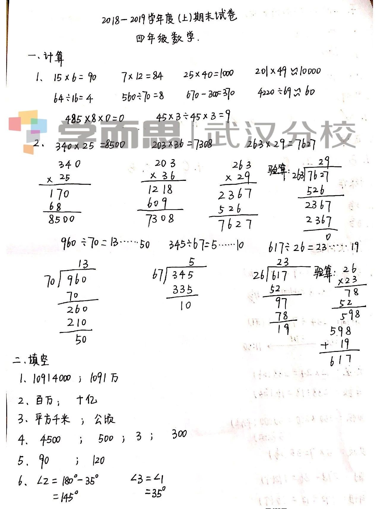 2019年武汉市硚口区小学四年级期末考试卷(图片版)(4)
