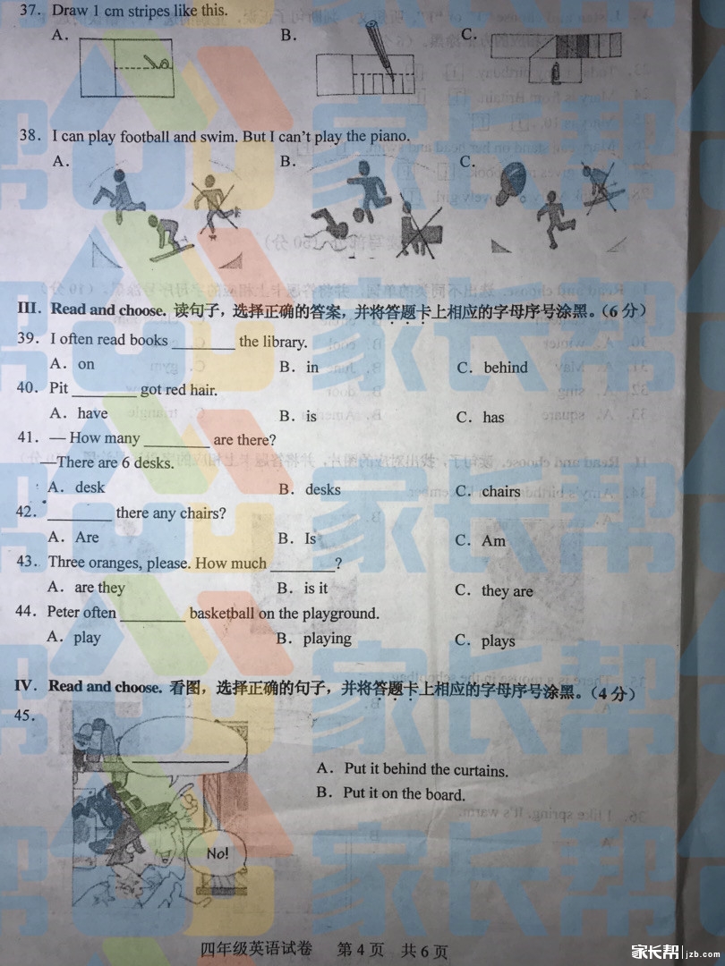 2019年武汉市武昌区小学四年级英语期末试题卷(图片版)(4)