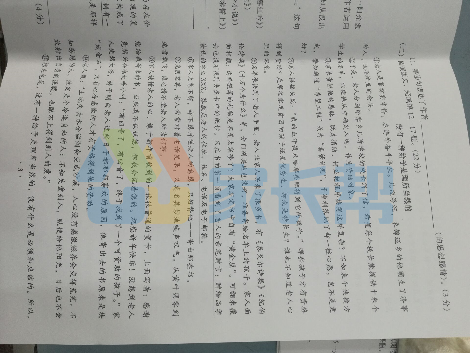 2019年武汉市江岸区小学六年级语文期末考试卷(图片版)(3)