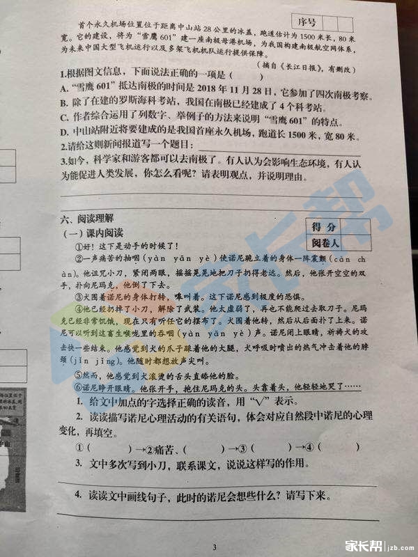 2019年武汉市硚口区小学六年级语文期末考试卷(图片版)(3)