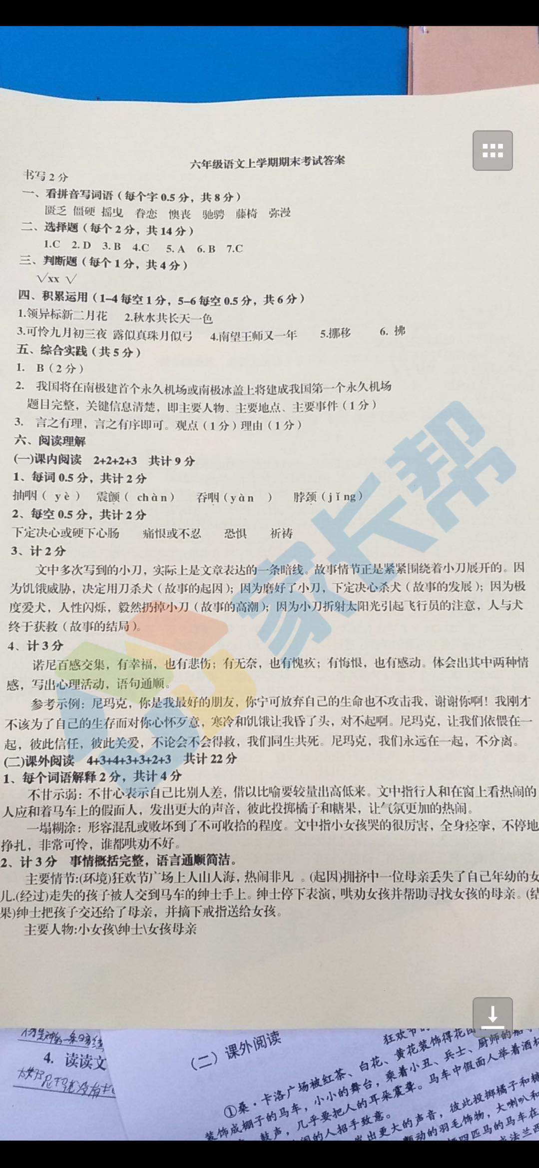 2019年武汉市硚口区小学六年级语文期末考试卷(图片版)(6)