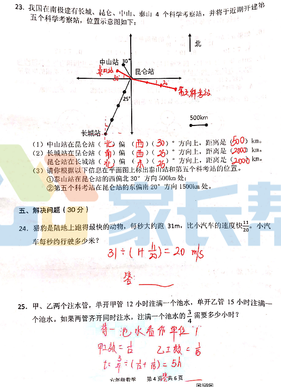 2019年武汉市东湖高新区小学六年级数学期末卷(图片版)(4)