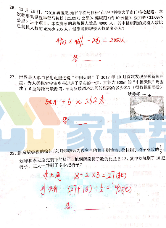 2019年武汉市东湖高新区小学六年级数学期末卷(图片版)(5)