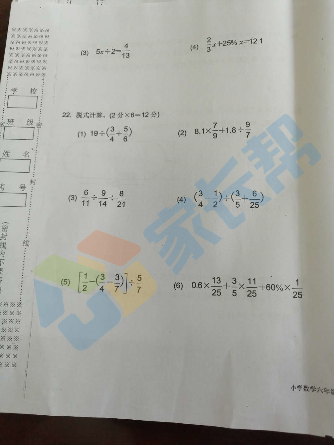 2019年武汉市青山区小学六年级数学期末卷(图片版)(5)